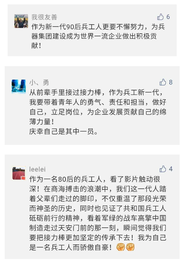 相比老一輩,年a輕的兵工人也表達(dá)了傳承紅色基因,弘揚(yáng)新時(shí)代“把一切獻(xiàn)給黨”的人民兵工精神的豪邁氣概......